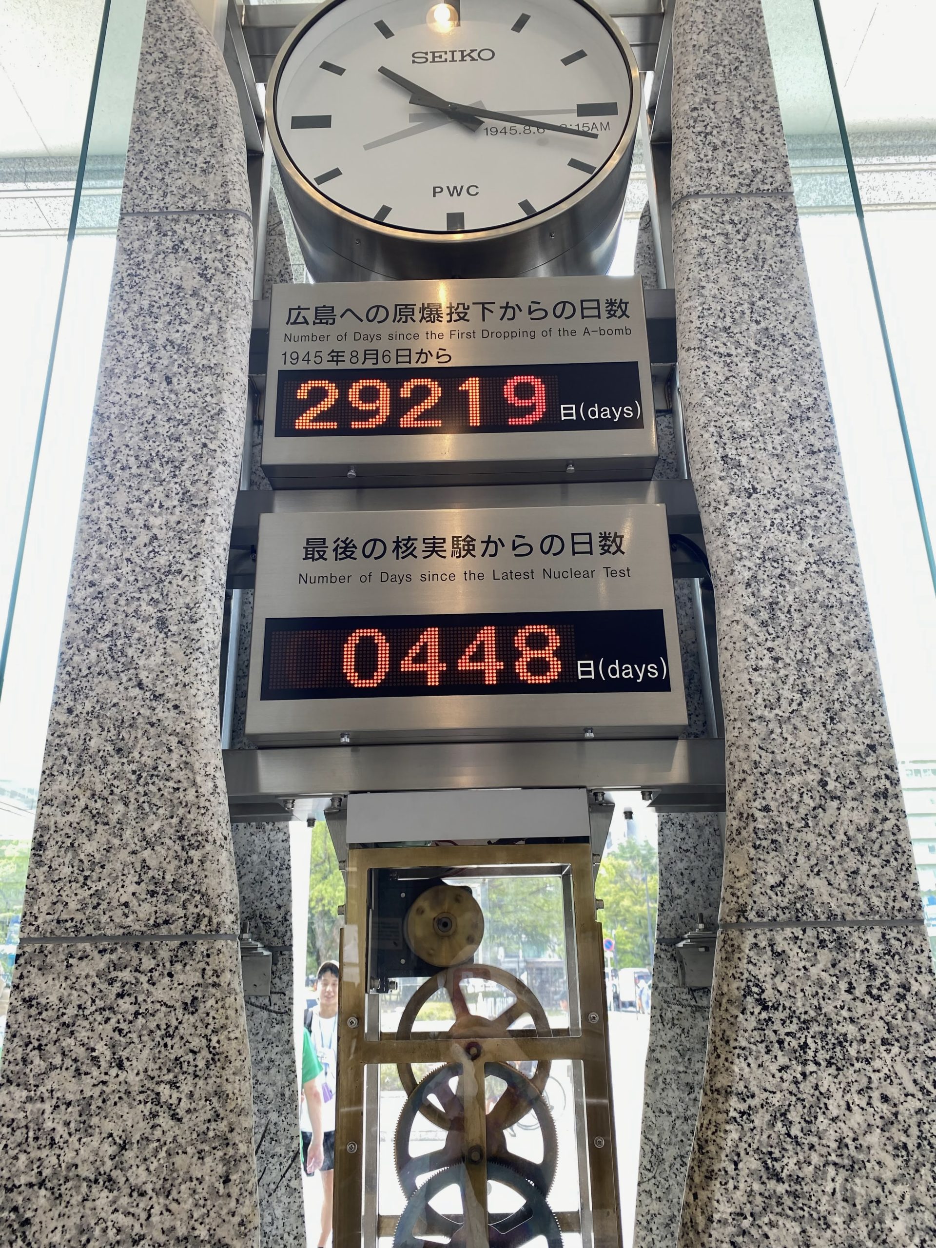The Peace Watch is a clock at Hiroshima Peace Memorial Museum that shows the number of days since the last nuclear test. It resets to zero if a new test occurs, serving as a reminder of the ongoing threat of nuclear weapons and the need for disarmament.