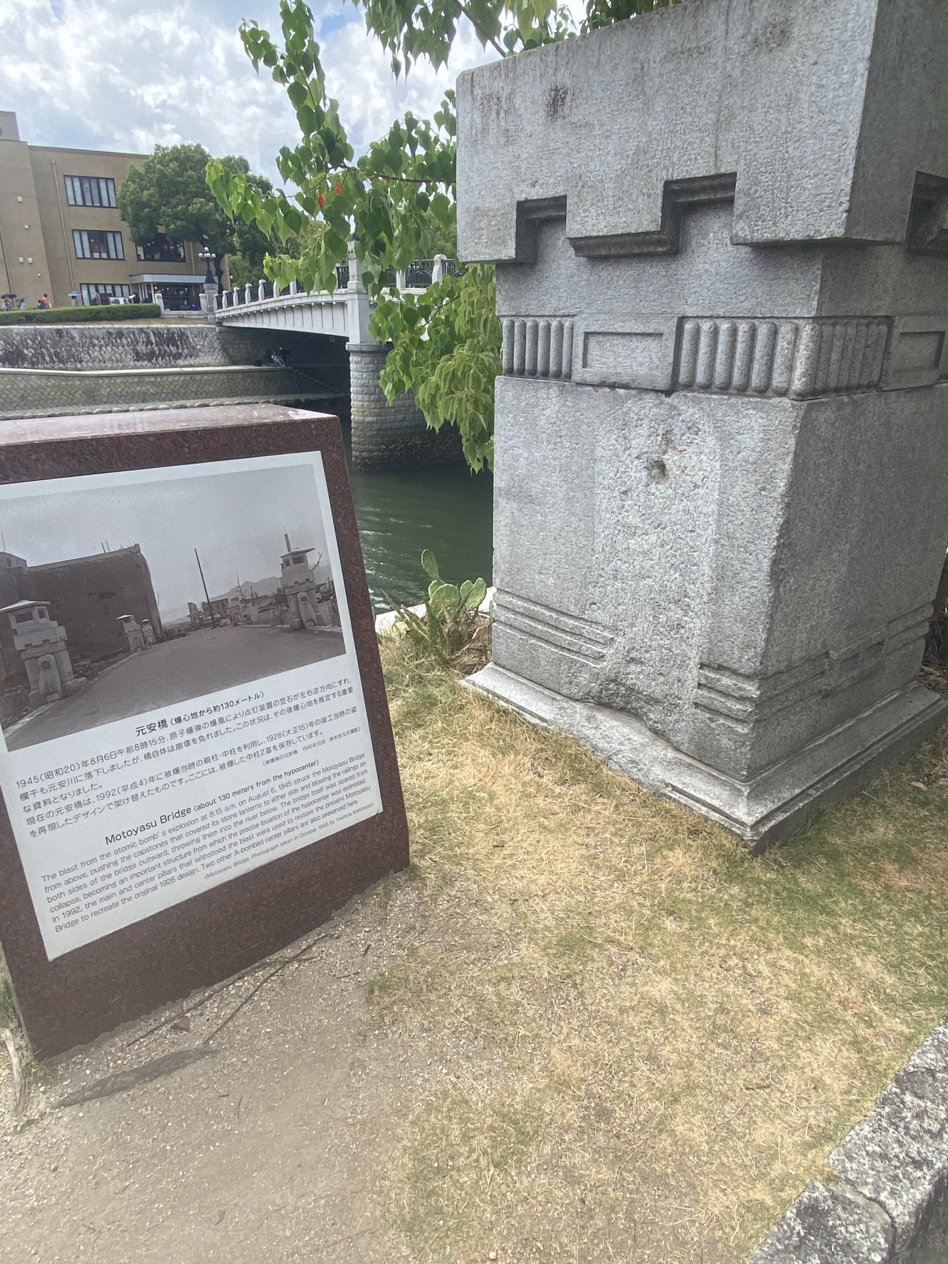 The Motoyasu Bridge is about 130 meters east of the Dome. Despite the explosion, this bridge survived mostly intact. It became a vital crossing point for rescue and relief efforts after the bombing.
