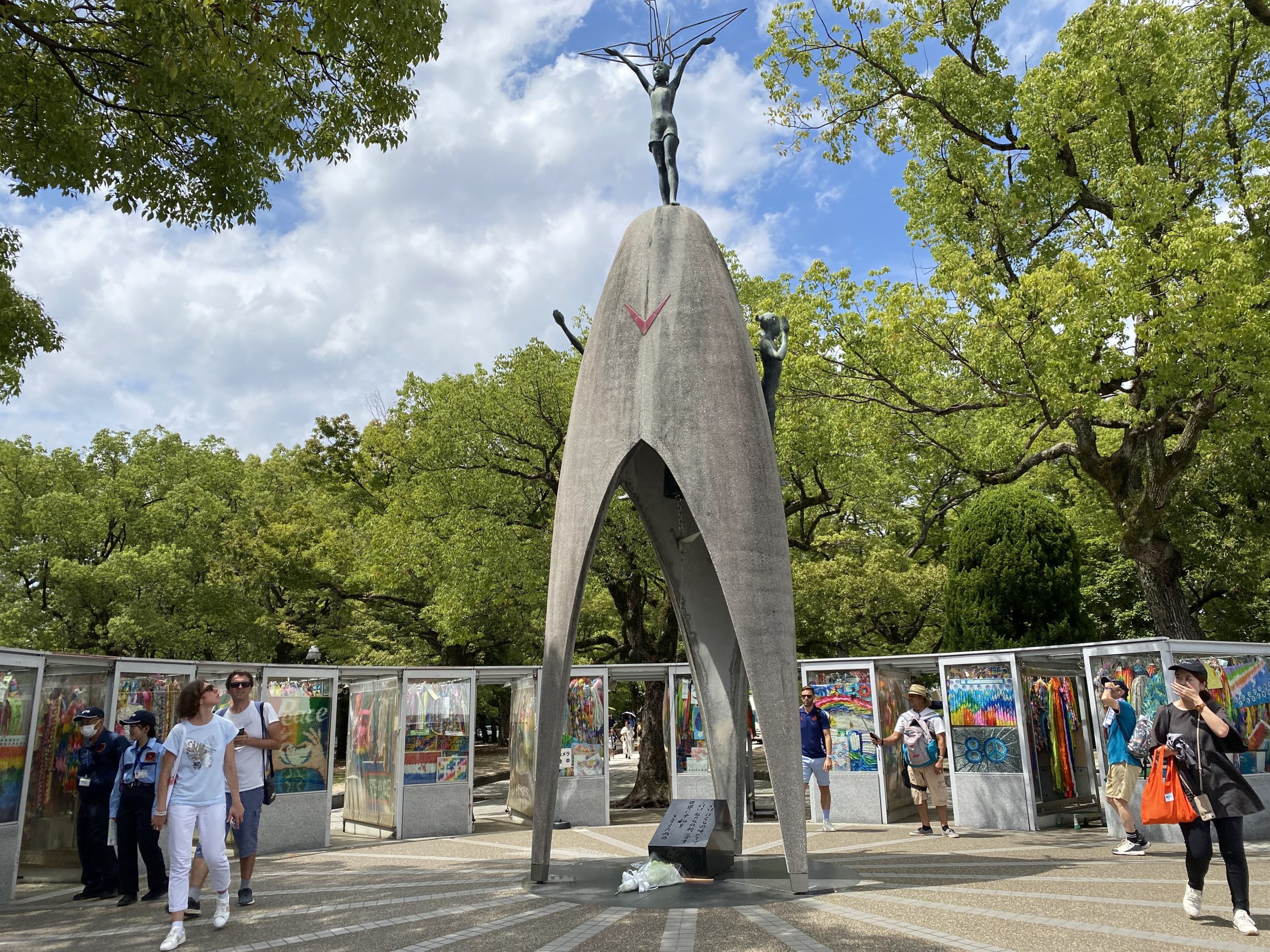 At 11:02am, on the 9th August 1945, a plutonium atomic bomb exploded approximately 500m above the location of this monolith (pictured on the left below). In addition to origami cranes, white flowers are left on memorials to remember lives lost.