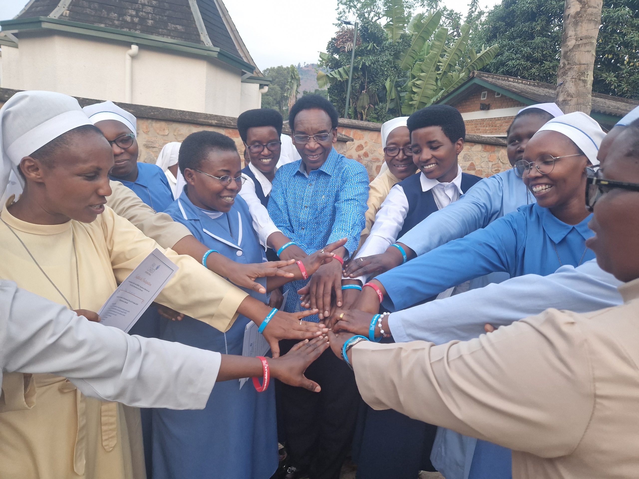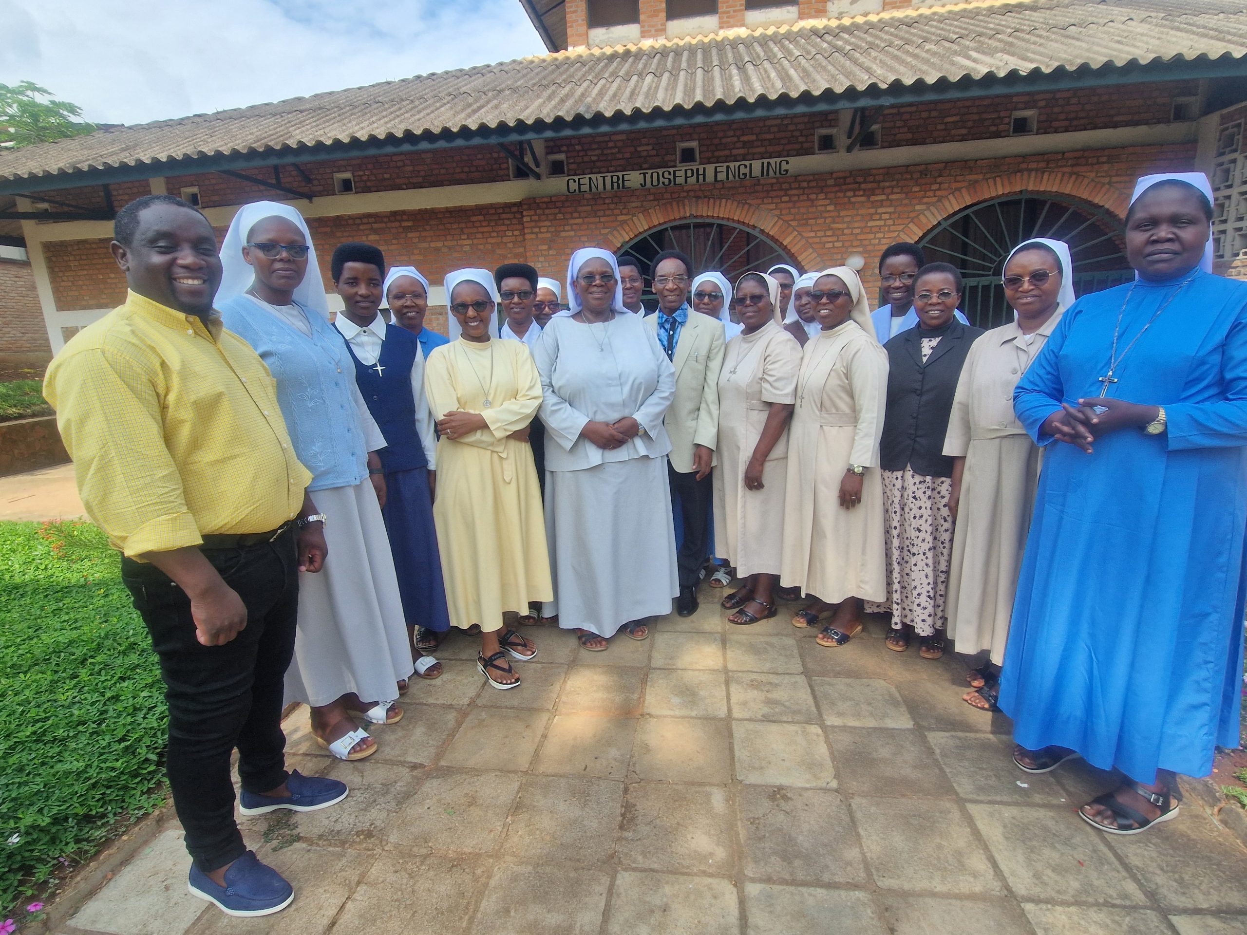 Sixteen sisters gathered to delve into nonviolence, conflict transformation, and peacebuilding, with the support of A. Dieudonné Sérukabuza, Sr Dévote Nikwigize, project assistant, and Sr Angèle GAPIO and Pascal Mugaruka, facilitators from the Democratic Republic of Congo.