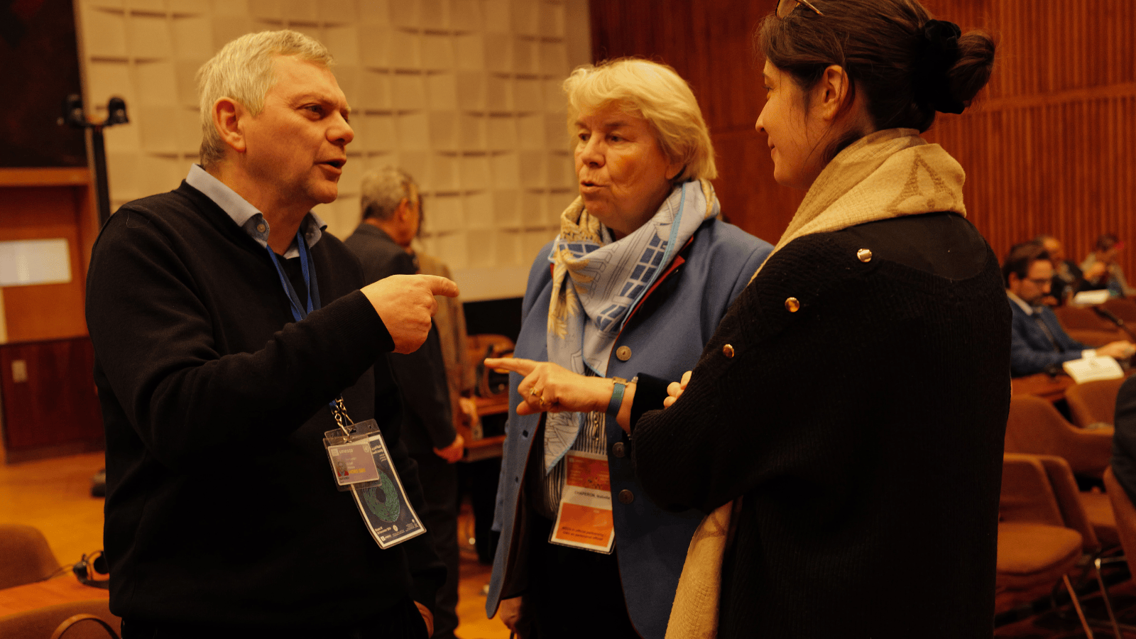 - Ghislain Le Ray and Bérengère Savelieff talking to Isabelle Chaperon, President of CCIC