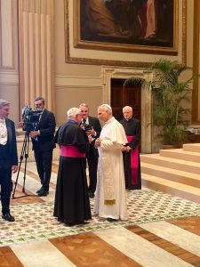 The Bishop was able to exchange a few words with the Holy Father, mentioning Pax Christi International and the recent World Gathering held in Florence.